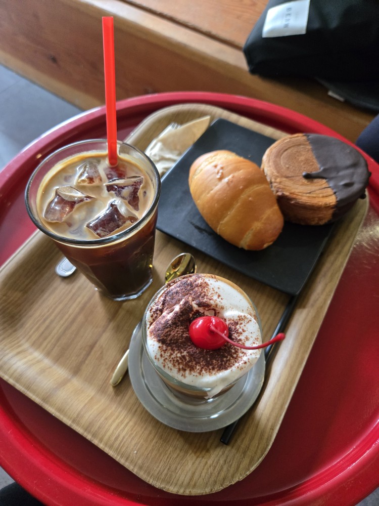 소금빵은 적당히 따뜻해서 버터의 풍미와 고소함이 잘 느껴져서 맛있었고, 체리슈페너는 시그니쳐 메뉴답게 일단 보기에 예뻤다!