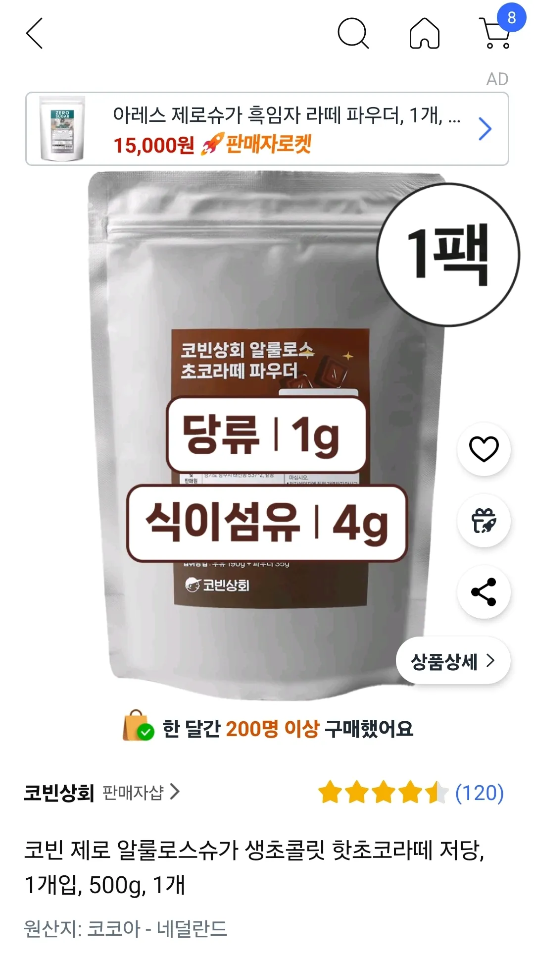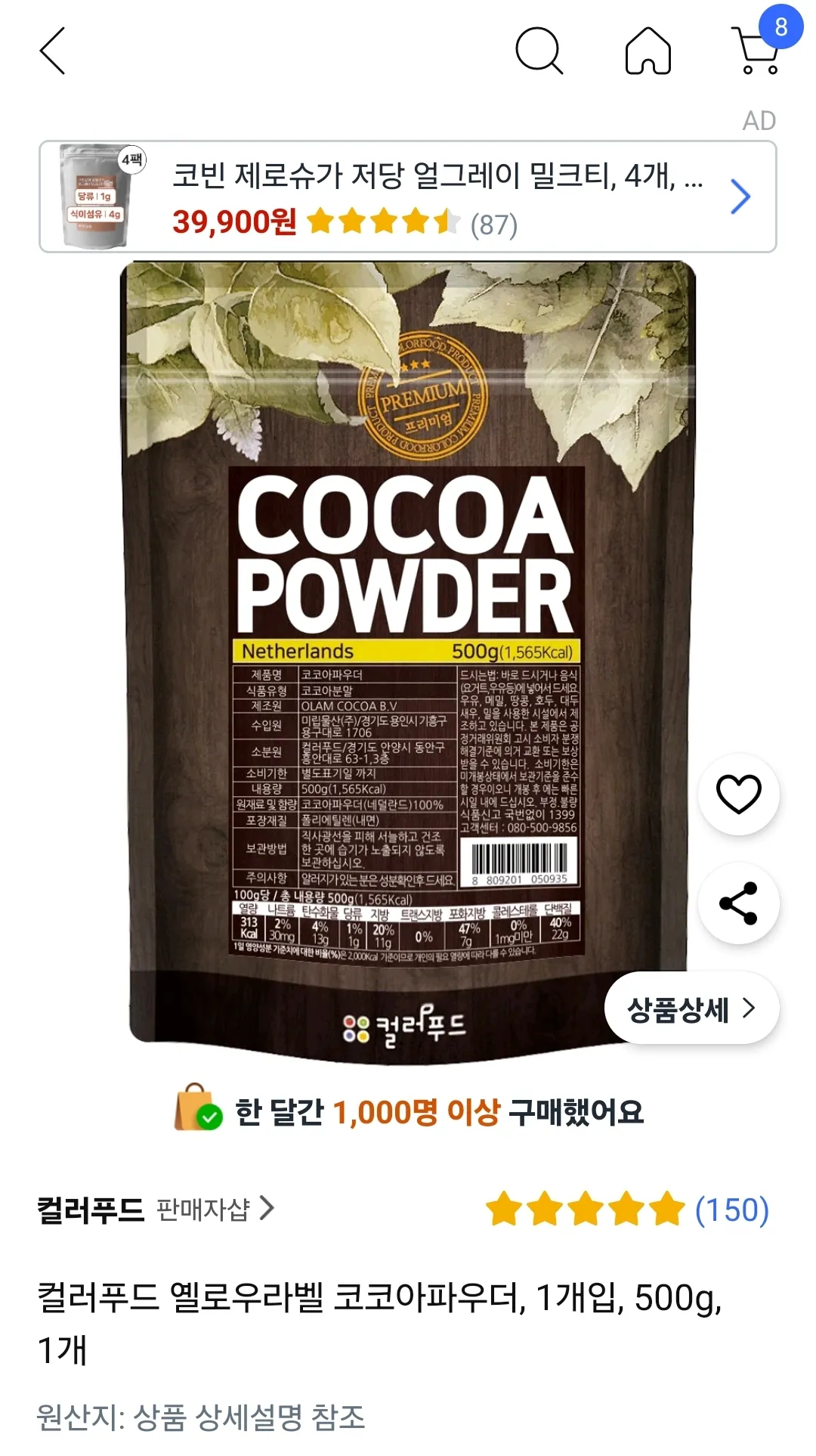 첫 번째 실패 이후 사둔 카카오 파우더를 모두 사용해 버려서 쿠팡으로 긴급하게 카카오 파우더를 샀다.