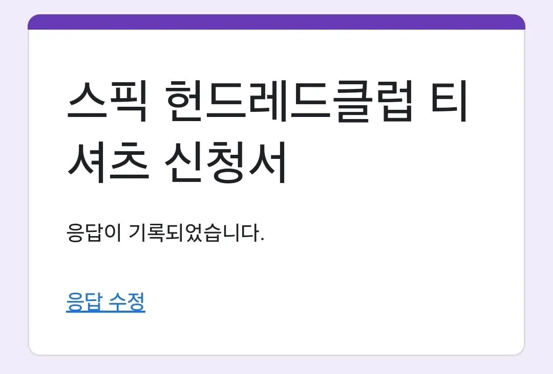 '스픽 헌드레드 클럽 티셔츠'의 간단한 설명이 나오고 티셔츠를 신청할 수 있는 구글 폼 링크를 준다.