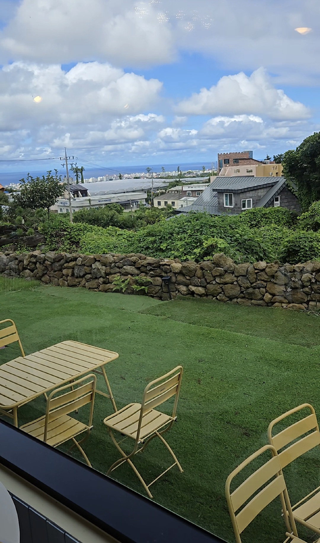 외부 잔디밭에 노란색 테이블도 몇 개 놓여있다. 날씨가 적당히 좋을 때 제주도의 하늘을 만끽하며 외부 테이블에서 브런치를 즐기는 것도 좋은 선택!